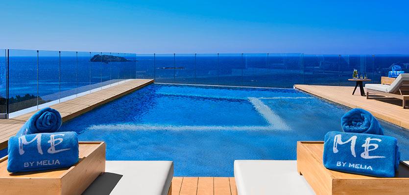 Der Pool steht ausschließlich Gästen der ME+ Suiten und Gästen zur Verfügung, die vorab reserviert haben. Der exklusive Bereich wird durch eine Auswahl von Bali-Liegen und dem maßgeschneiderten ME+ Service abgerundet. Sehen und gesehen werden heißt das Motto in einer Location, die die Essenz des ME Ibiza wunderbar widerspiegelt.