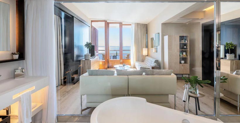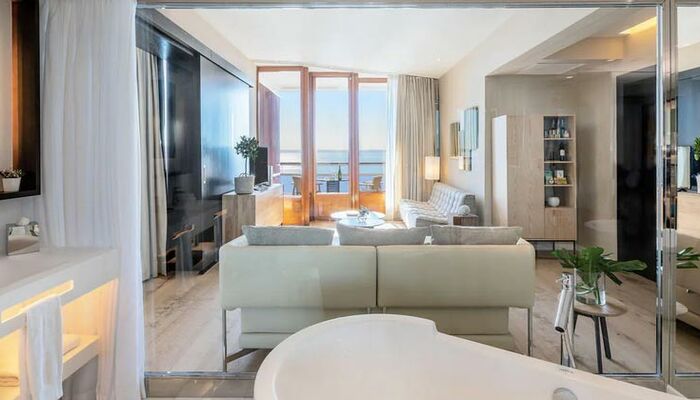 Genieße in dieser komplett renovierten neuen Suite maximalen Komfort und einen wunderbaren Meerblick. Helle und geräumige, 108 m2 große Suite mit luxuriösen Details und hochwertigen Materialien. Die Suite verfügt über ein Schlafzimmer mit einem außergewöhnlichen Kingsize-Bett, eine gemütliche Lounge sowie zwei volle Badezimmer mit einer großen Badewanne, in der dich zu entspannen kannst, und einer separaten Regendusche. Sie verfügt auch über ein Ankleidezimmer, die sich ideal für die Organisation deiner Habseligkeiten eignet.
