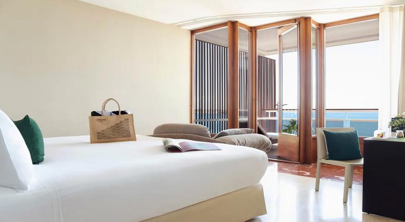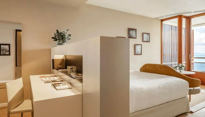 Geräumige (38 m2) und helle Premium Zimmer mit Meerblick und einer großartigen Lage in der 5. und 6. Etage des Hotels. Die Premium Zimmer bieten kostenfreien Zugang zum Wasserkreislauf im SPA von Clarins.. Die Zimmer sind mit allen Annehmlichkeiten eines Luxushotels ausgestattet und ausgesprochen elegant eingerichtet. Sie verfügen über eine Reihe von modernen Details und können auf Wunsch auch mit einem anderen Zimmer oder einer Suite verbunden werden.
