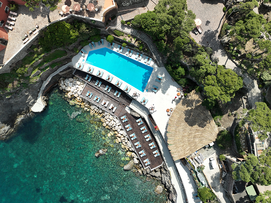 Der Swimmingpool mit beheiztem Meerwasser befindet sich auf einer der Terrassen, die sanft vom Turm zum Meer hin abfallen. Ein bequemer Weg zum Meer ermöglicht es den Gästen, in einer der bezauberndsten Buchten der Insel zu baden. Sieben Hektar mediterrane Macchia und subtropische Pflanzen, die den Turm und die Zimmer der Villa Colombaia umgeben, reichen im Osten bis zur Bucht von San Montano. Dies ist der ideale Ort für Menschen, die Natur und Ruhe lieben, wo jeder Schritt, den Sie in jede Richtung machen, atemberaubende Ausblicke von unvergleichlicher Schönheit offenbart und warme Sonnenuntergänge wie der letzte Schliff eines Künstlers an einem Gemälde einer üppigen und luxuriösen Natur sind.