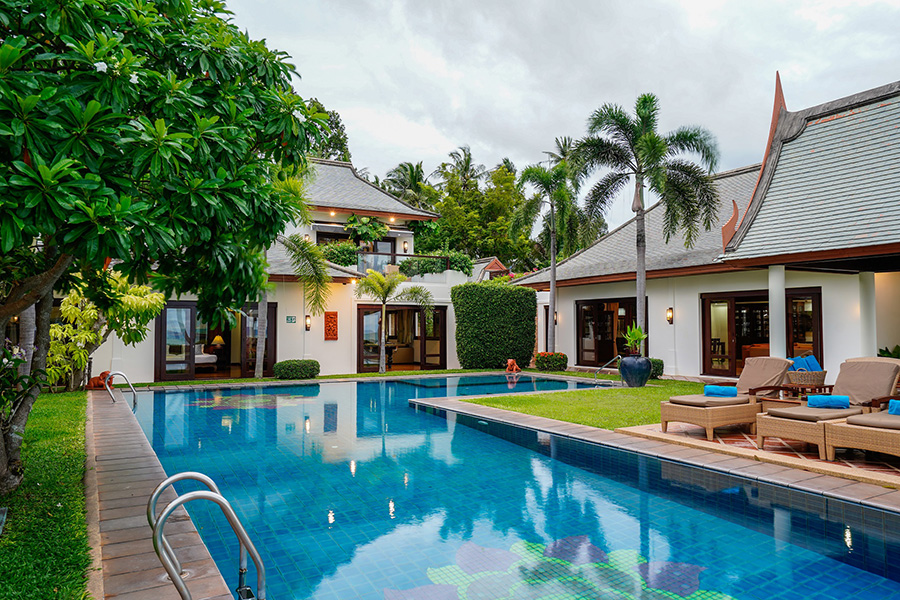 Chinesisch-portugiesische Akzente und thailändische Kunstwerke verleihen dieser großartigen Villa viel lokalen Charakter. Das weitläufige Gelände bietet 39 Meter Strandfront und sechs Schlafzimmer, darunter ein auf zwei Ebenen verteiltes Familienzimmer mit Billardtisch und ein Hauptschlafzimmer mit Whirlpool, was es zu einem Favoriten bei großen Gruppen und Hochzeitsgesellschaften macht. Ein großer Swimmingpool und ein Dampfbad vervollständigen die Liste der Einrichtungen. Auch als Villa mit vier bis fünf Schlafzimmern verfügbar.