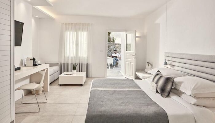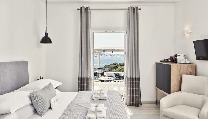 Die modernen Superior Doppelzimmer sind individuell eingerichtet, inspiriert von der Tradition und Architektur der Insel. Die Zimmer sind eine Mischung aus Komfort und zwanglosem Leben, während sie einen direkten Blick auf die Ägäis bieten. Bei einer ca. Größe von 24 bis 28 m² bietet das Zimmer Platz für bis zu zwei Personen. Im Raum bringen Sie viel Tageslicht und eine sanfte Farbpalette - kombiniert mit minimalistischem Design - in Ihr eigenes Paradies.