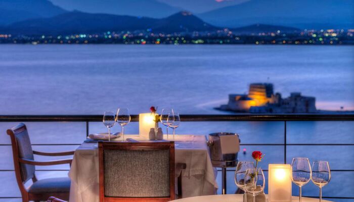 Die luxuriöse Anlage schmiegt sich an die antiken Mauern der Akronauplia-Festung, der Blick schweift über die Bucht von Argolis und die Altstadt von Nauplia: beste Aussichten für einen historischen und unvergesslichen Aufenthalt. Das Nafplia Palace Hotel & Villas ruht auf der bronzezeitlichen Akropolis von Akronauplia mit einer berauschenden Aussicht über die Bucht von Argolis und Nauplia.