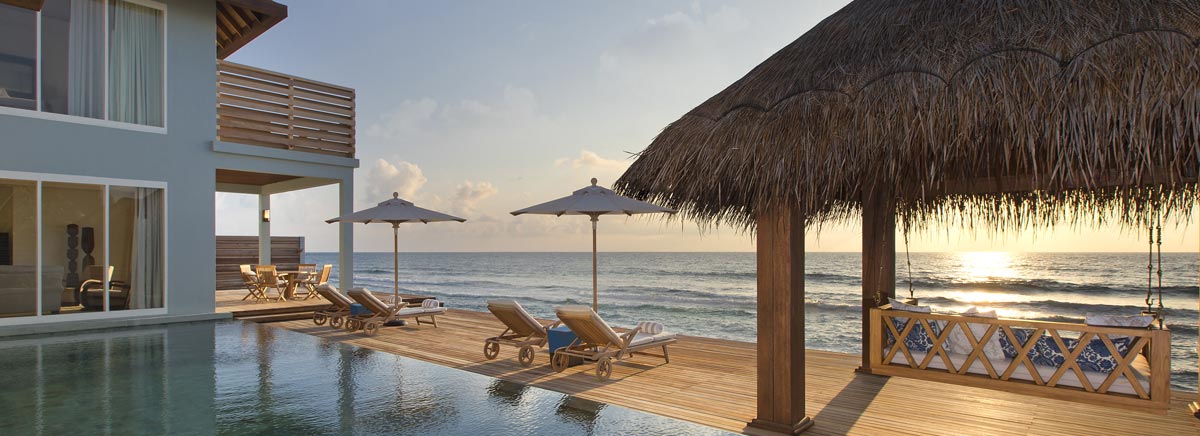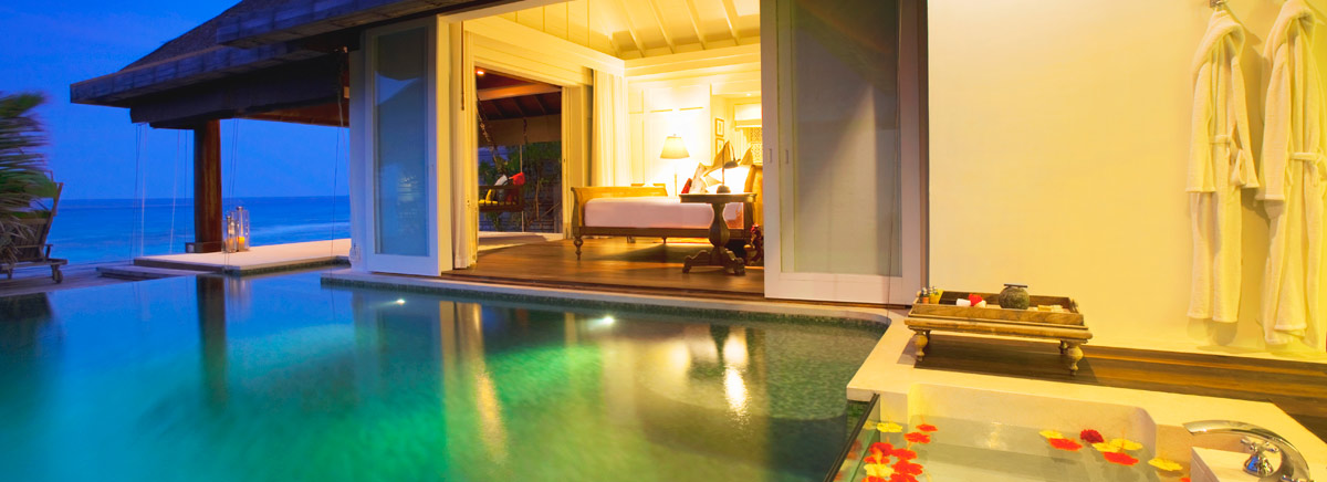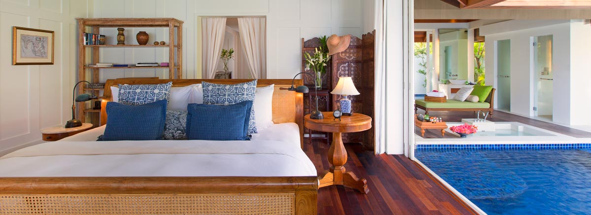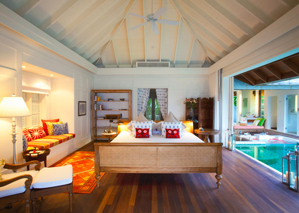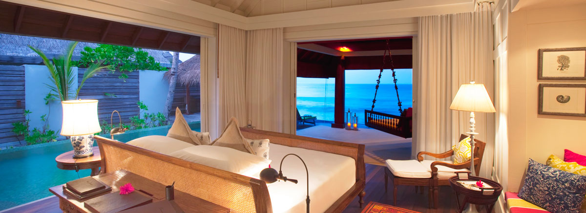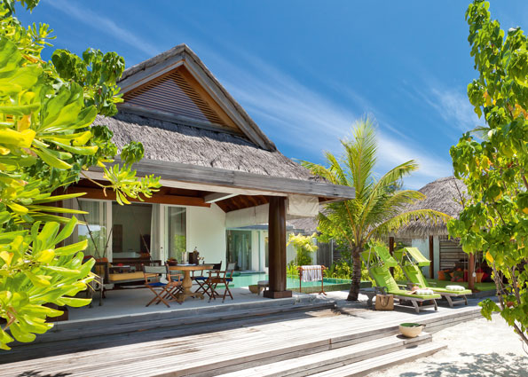 Die luxuriösesten Strandvillen der Malediven. Ihr Inselrefugium überblickt den Strand und die kristallklare Lagune ist nur wenige Schritte entfernt. Klassische koloniale Möbel und Textilien schmücken die modernen, in weiß gehaltenen Räume.