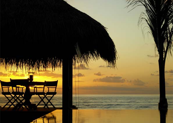 Poolvilla mit Blick auf den Ozean soweit das Auge reicht und geräumigem Wohnbereich
