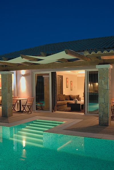 Die Villa (120 qm) mit privatem Swimmingpool und Garten ist für V. I. P. Gäste konzipiert.