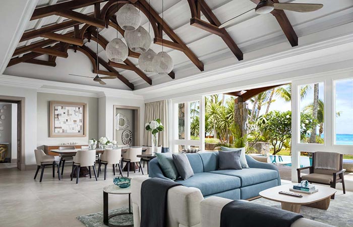 Einzigartige und faszinierende Aussichten erwarten Sie, elegant eingerichtete Zimmer und Suiten mit Blick auf das Meer oder die Lagune und die Möglichkeit des direkten Zugangs zum unberührten Strand. Die mauritianische Natur spiegelt sich in der gesamten Luxusanlage mit Kunstwerken in diversen Farbtönen sowie dem azurblauem Ozean und den vielfaltigen Blüten wider.