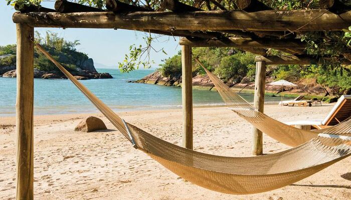 Das Ponta dos Ganchos genießt eine hervorragende Lage, nur 40 km von Florianópolis und einen Katzensprung von São Paulo, Rio de Janeiro und Buenos Aires entfernt. Die privat geführte Halbinsel ist von den atemberaubenden Gewässern der Smaragdküste umgeben und garantiert absolute Privatsphäre. Komfort und Entspannung sind in jedem der 25 eleganten und charmanten Bungalows garantiert. Einige ragen über das atemberaubende Schauspiel der unzähligen Grüntöne, in denen der Regenwald auf das smaragdgrüne Meer trifft. Das Gütesiegel der Leading Hotels of the World bestätigt den Komfort der Einrichtungen, die Verpflichtung zur Qualität und das hohe Niveau der Dienstleistungen.