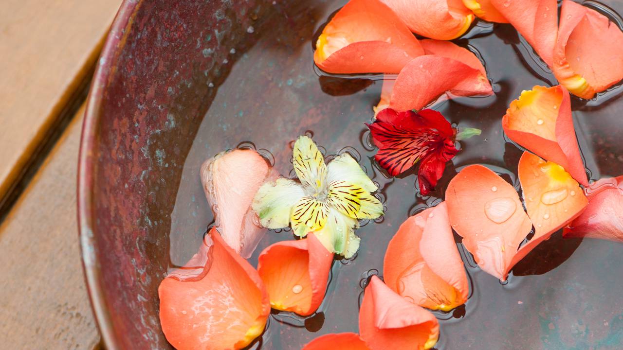Am Ende des Nachmittags überqueren Braut und Bräutigam die kleine Brücke, die den Strand des Resorts mit der Insel verbindet, während die Sonne untergeht, eingehüllt in sanfte romantische Musik, die mit den Klängen des Meeres und der Natur verschmilzt. Sie kommen zu einem privaten Pavillon, der mit Blütenblättern und Kerzen geschmückt ist, und werden mit köstlich delikatem Champagner begrüßt, um diesen besonderen Moment zu feiern.