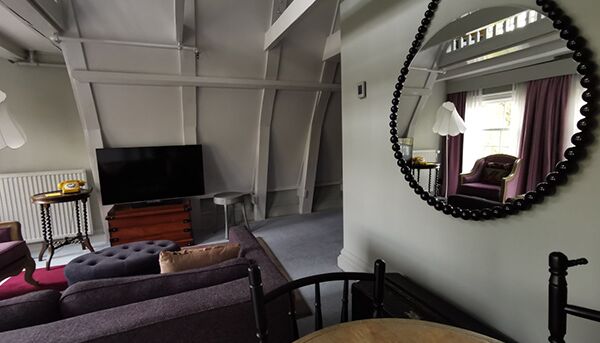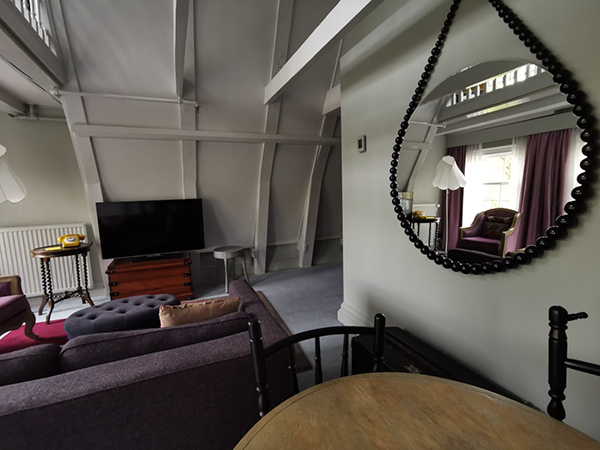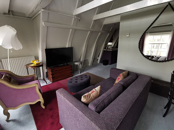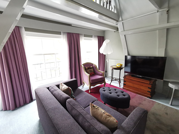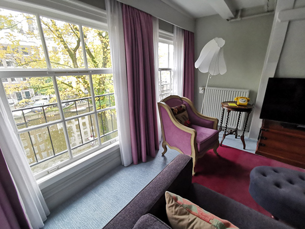 Die Suite: Separates Wohnzimmer und Sitzbereich, Aussicht auf die Gracht, 37 m2