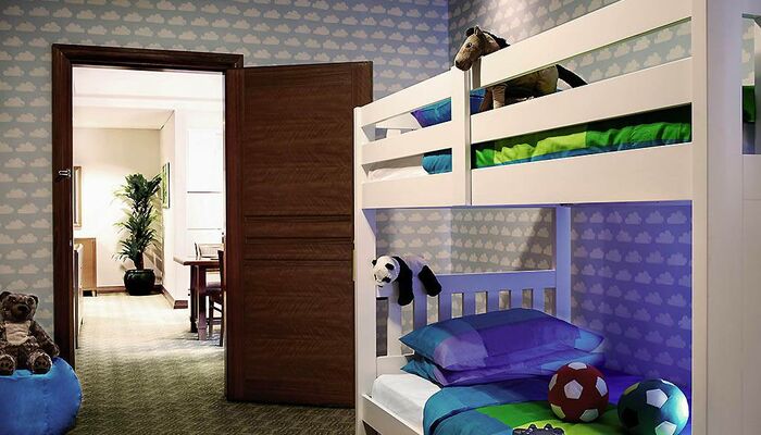 Familiensuite mit 2 Schlafz., exkl. Zugang zum Wohnbereich, 1 Kingsize-Bett und 1 Stockbett