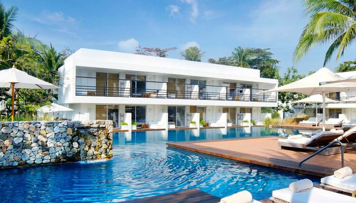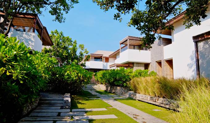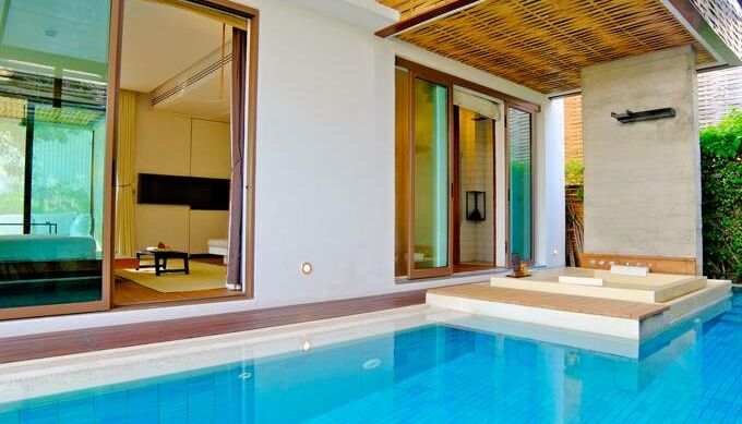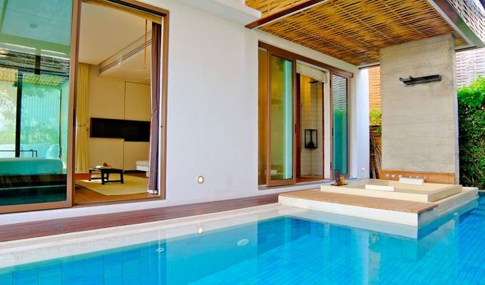 Die 16 Doppelhaushälften Silksand Deluxe und Sansky Rooms sind von den fließenden Winden von Hua Hin inspiriert und umgeben einen exklusiven Pool, der den Gästen einen privaten Zufluchtsort in Putahracas lebhafter und üppiger Parkanlage bietet.