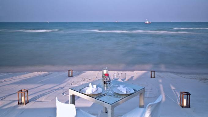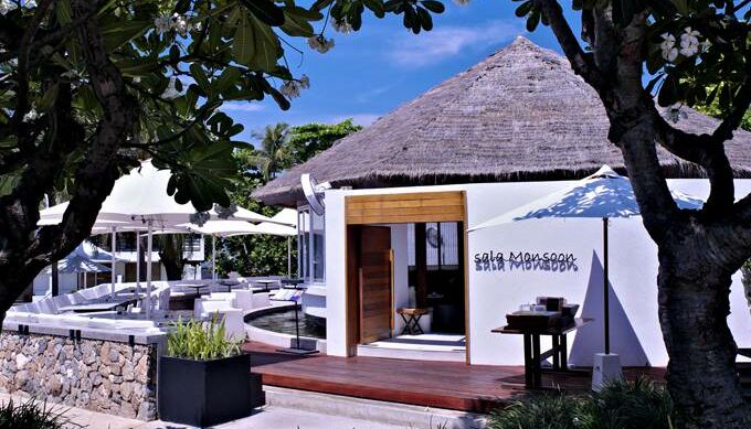 Ein Open-Air-Restaurant mit ununterbrochenem Blick auf das Meer und dem Rauschen der Wellen direkt am Fuße des Restaurants bietet die Zutaten für ein ideales kulinarisches Erlebnis. Sie können entweder im Restaurant an dunklen dunklen Holztischen oder in weißen beleuchteten Sesseln im Lounge-Stil sitzen, wo Sie die von Thai & Pacific Rim inspirierten Gerichte und authentische Grillgerichte genießen können.
