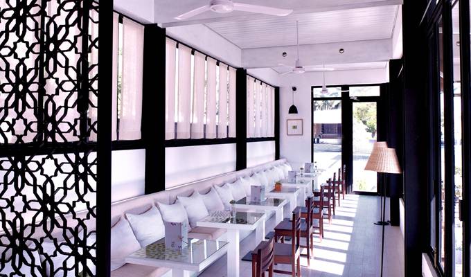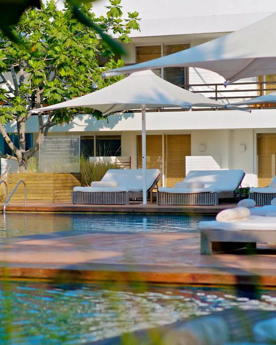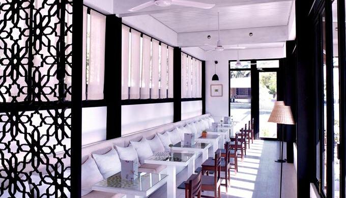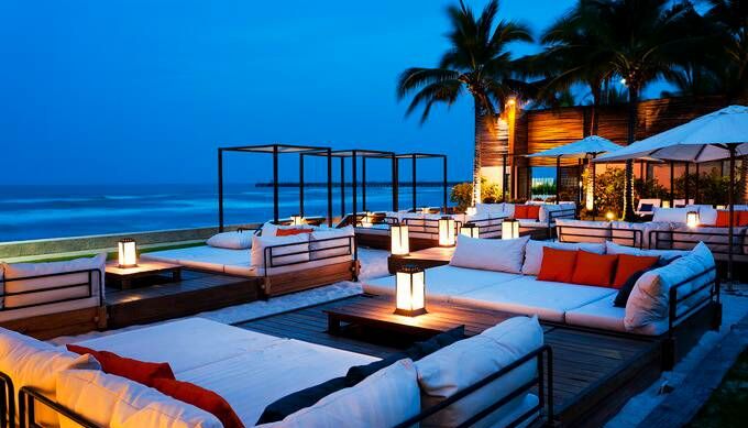 Kommen Sie zum Sonnenuntergang, tritt der Beach Club, der von zahlreichen Glaskassetten beleuchtet wird, in Aktion. Mit tief sitzenden, übergroßen Sofas und losen Kissen bietet der Club den perfekten Ort zum Entspannen und Entspannen bei einer Auswahl exotischer Cocktails.