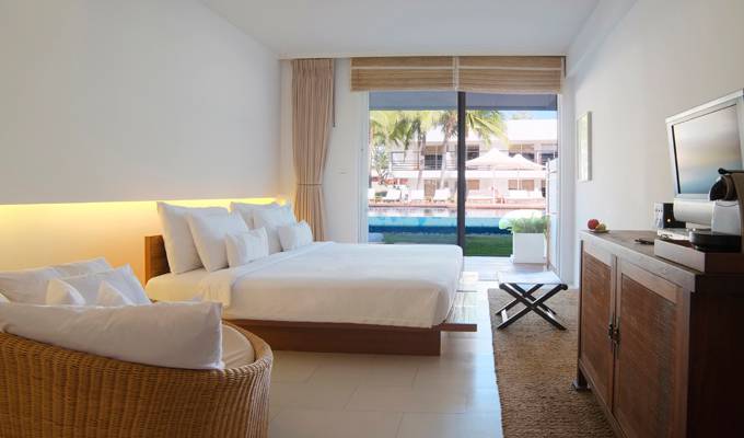 Alle Zimmer sind in natürlichen Farbtönen gehalten und verfügen über ein helles und luftiges Design, eine Nespresso-Kaffeemaschine und einen Film-Chanel mit 350 Titeln. Die Zimmer liegen rund um den Pool und sind 100 Meter vom Strand entfernt.