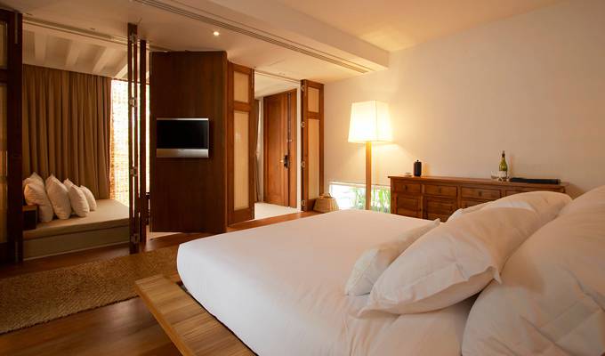Die 8 Silksand Deluxe-Zimmer befinden sich in den oberen Etagen und sind die neueste Zimmerkategorie von Putahracs, die im Dezember 2014 eingeführt wurde. Jede Unterkunft verfügt über geflieste Mosaikböden, begehbare Kleiderschränke, ein Kingsize-Bett und ein Tagesbett, das auch als Doppelbett dienen kann Zustellbett, begehbare Dusche mit Whirlpool und ein privater Balkon mit Sitzbank mit Blick auf den Pool. Alle Zimmer sind in natürlichen Farbtönen gehalten und verfügen über ein helles und luftiges Design, eine Nespresso-Kaffeemaschine und einen Film-Chanel mit 350 Titeln. Die Zimmer liegen rund um den Pool und sind 100 Meter vom Strand entfernt.