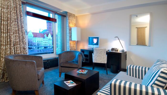 Die Superior-Class Zimmer bieten Ihnen alle Annehmlichkeiten der Comfort Class, verfügen jedoch über noch mehr Platz und sind mit 35qm sehr geräumig. Eine großzügige Sitzgruppe mit gemütlichem Sofa, lädt nach einem langen Arbeitstag oder einem ausgiebigen Stadtbummel zum Entspannen ein. Teilweise verfügen diese Zimmer über einen atemberaubend schönen Blick auf die Altstadt.