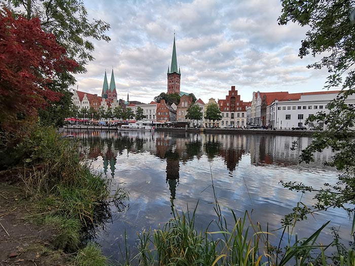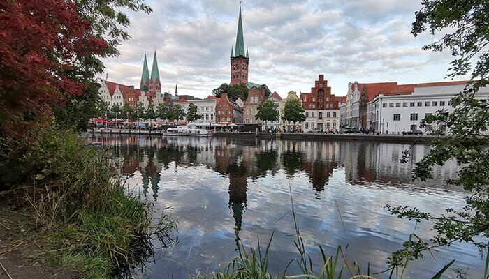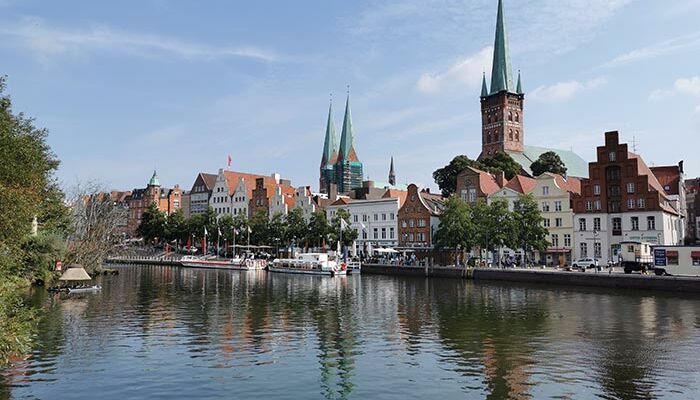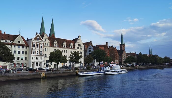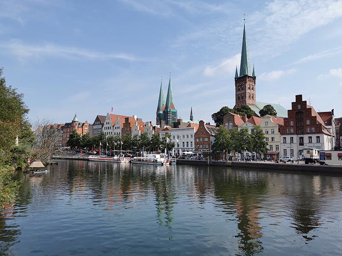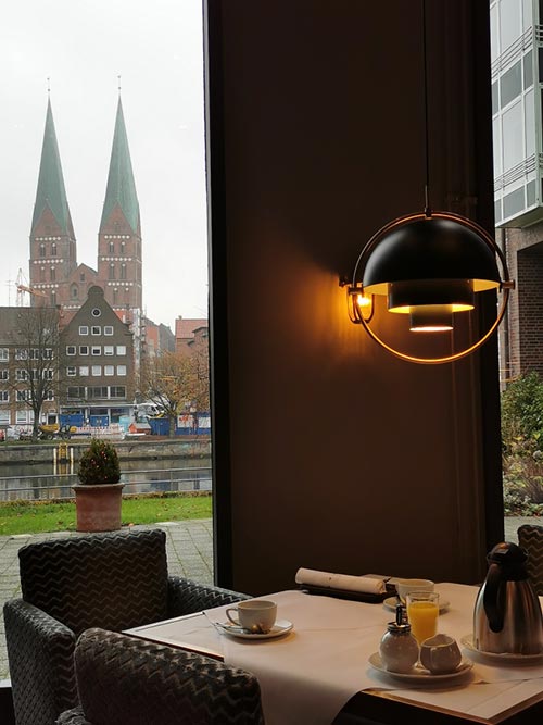 Das Hotel liegt direkt am Fluss und unweit des Lübecker Stadtzentrums