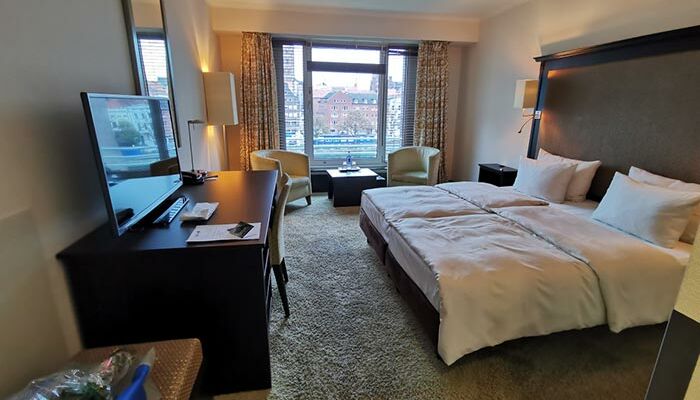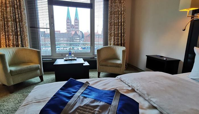 Wählen Sie aus den 224 klimatisierten Zimmern und Suiten des Hotels in Lübeck und genießen Sie das Beste aus charakteristischem Stil und durchdachten Annehmlichkeiten. Der malerische Ausblick auf die Altstadt wird Ihnen noch lange in Erinnerung bleiben. Die Farbgestaltung versprüht mit ihren angenehmen Grün-, Blau- und Brombeertönen ein Wohlfühlambiente. Bleiben Sie dank Highspeed-Internetzugang über W-LAN auf dem Laufenden. Es stehen barrierefreie Zimmer sowie Nichtraucherzimmer zur Verfügung.