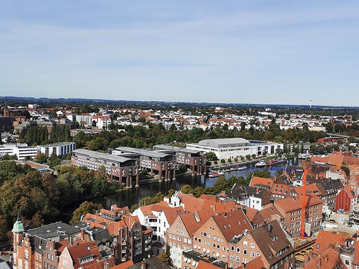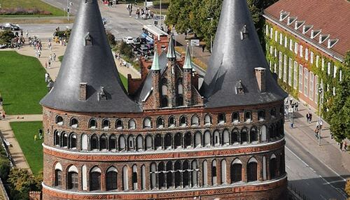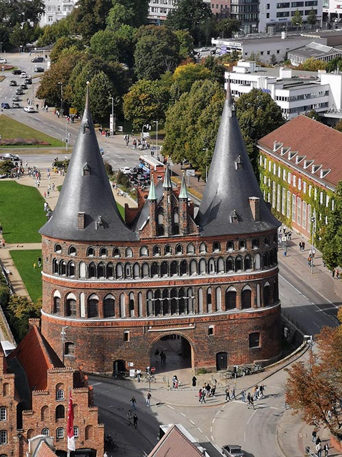 Mit dem Zug: Gehen Sie vom Bahnhof etwa 5 Minuten in Richtung Zentrum. Vor dem Holstentor biegen Sie links in die Williy-Brandt-Allee ein. Das Hotel liegt auf der rechten Seite. Der Weg dauert ca. 5 Minuten mit dem Taxi.