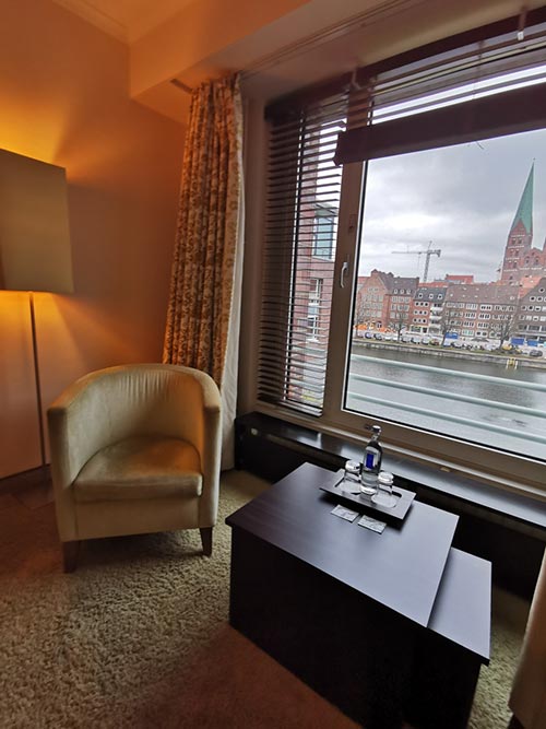 Information zum Zimmer: Traumhafter Blick über die Trave und die historische Altstadt, ein angeschlossenes zweites Schlafzimmer und Komfort, der seinesgleichen sucht.