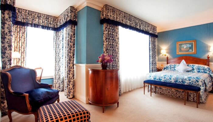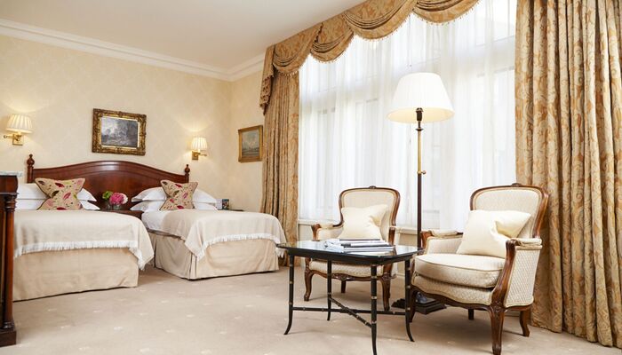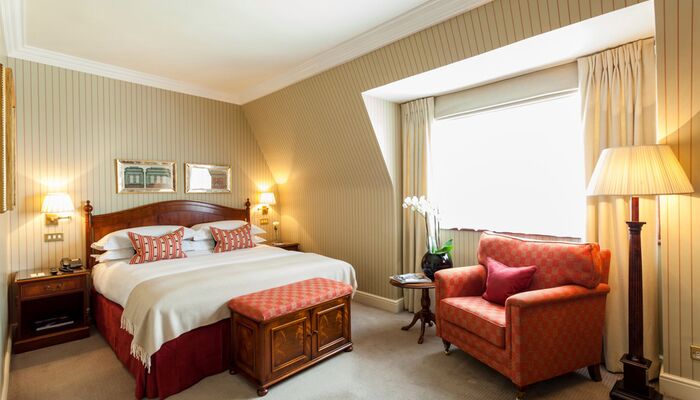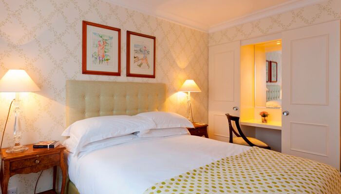 Die charmanten Deluxe Doppelzimmer bieten geräumige Unterkünfte, zusätzlichen Kleiderschrank und große getäfelte Badezimmer. Vier haben die Privatsphäre, sich in einem älteren Teil des Hotels in einem privaten Korridor zu befinden. Komfortable handgenähte Matratzen, Bettwäsche aus ägyptischer Baumwolle, kostenfreies WLAN und Temple Spa-Produkte sind im Preis inbegriffen.