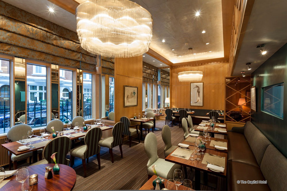 Das mit einem Michelin-Stern ausgezeichnete Restaurant Outlaw‘s im Hotel The Capital London bietet eine ständig wechselnde Auswahl an einzigartigen Gerichten, die mit britischen Meeresfrüchten zubereitet werden, die vorwiegend an der Küste von Cornwall gefangen werden.