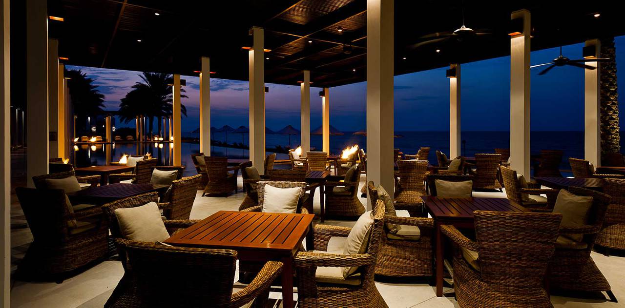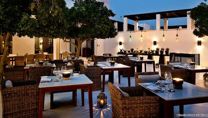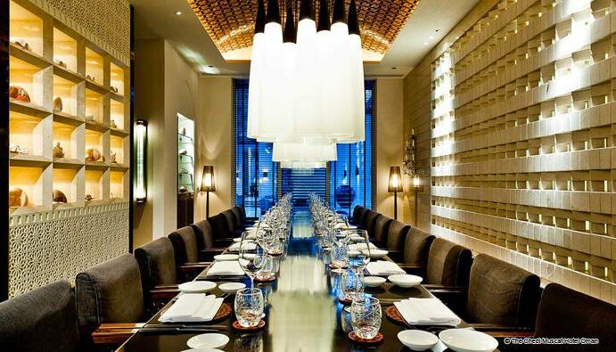 Sechs Restaurants und zwei Lounges im Chedi Muscat decken die kulinarischen Genüsse und Weine der Welt ab, vom Mittelmeerraum und dem Nahen Osten, bis nach Südostasien und Indien. Stilvoll eingerichtet vom renommierten japanischen Innenarchitekten, Yasuhiro Koichi vom Design Studio SPIN, verbindet das Restaurant klares asiatisches Interieur mit charakteristischen Details der omanischen Architektur.