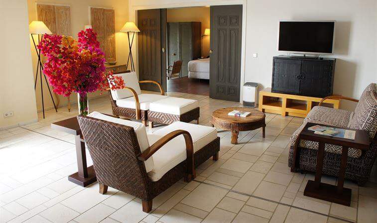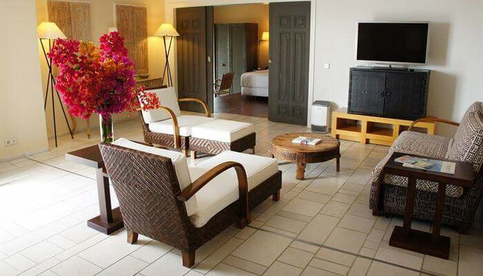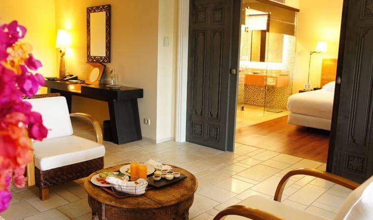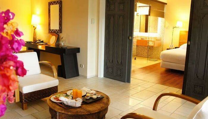 Die Deluxe-Zimmer verfügen jeweils über einen eigenen Balkon oder eine eigene Terrasse und sind mit einem bequemen Bambusstuhl, einem Couchtisch, einem Make-up-Schreibtisch mit Spiegel und einem geräumigen Kleiderschrank ausgestattet. Die Marmorbäder bieten eine Badewanne in Kombination mit einer Dusche und Waschtischen.